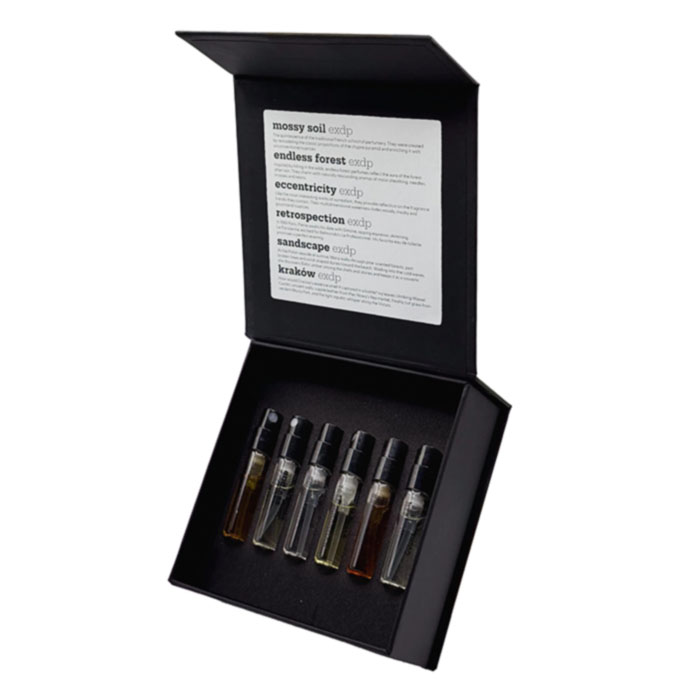 Zestaw próbek „Chapter 1” od JMP Artisan Perfumes to wyjątkowa kolekcja sześciu miniaturowych ekstraktów perfum, które zabiorą Cię w zmysłową podróż przez różnorodne krajobrazy zapachowe, od wilgotnych mszystych lasów, przez dzikie puszcze, po nostalgiczne wspomnienia i nadmorskie klimaty. To idealny zestaw, jeśli chcesz świadomie poznać charakter marki JMP Artisan Perfumes i wybrać zapach, który najlepiej odpowiada Twojemu stylowi i osobowości.